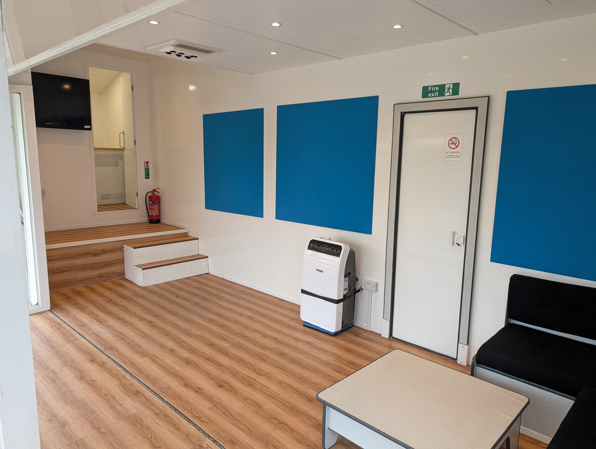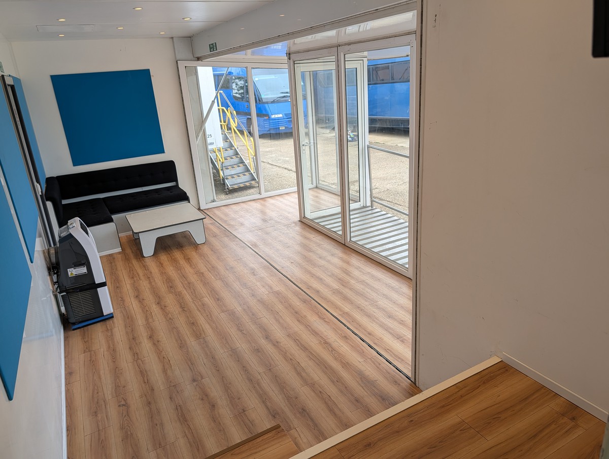 It has a large internal space which makes it perfect for training, presentation and direct marketing for up to 25 people at a time.